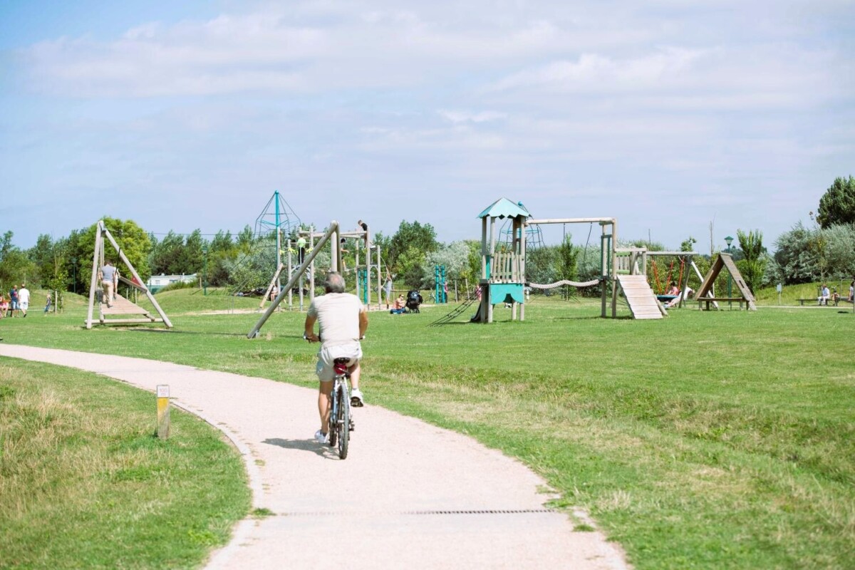 Hier kan je rustig rondslenteren, heerlijk lopen en fietsen, voluit gaan op het mountainbikeparcours of net helemaal tot rust komen. Met maar liefst tien hectare is er ruimte in overvloed. Kinderen kunnen zich hier volop uitleven: hangen aan de speeltoestellen, ravotten op het speelplein of een balletje trappen op een van de sportvelden.
